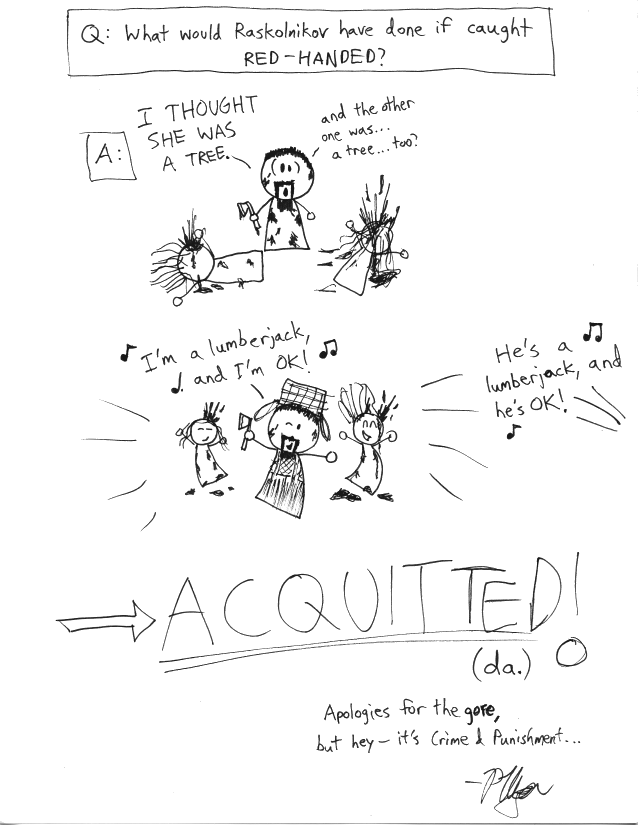 For those of you wondering, I doubt Raskolnikov dresses in women's clothing. Though he does go to bars. Also, no I do not know what is up with the dancing Ivanovnas.