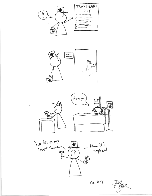 Look, if you're dating an organ transport worker you really just shouldn't break up with him right before you need a transplant. Sheesh, common sense.