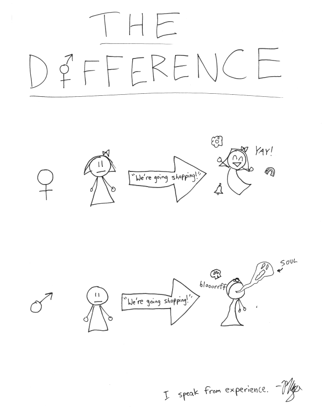 Seriously. I'm not being sexist. This is FACT based on my own observations and experience. My own observations being that while my sister enjoys shopping, I die a little inside whenever my parents drag me out to go buy clothes I need or something.